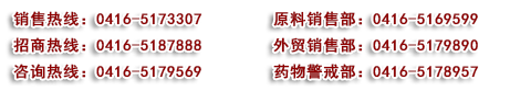 ●招商熱線:0416-5187888 ●藥物警戒部:0416-5178957 ●咨詢熱線:0416-5179569